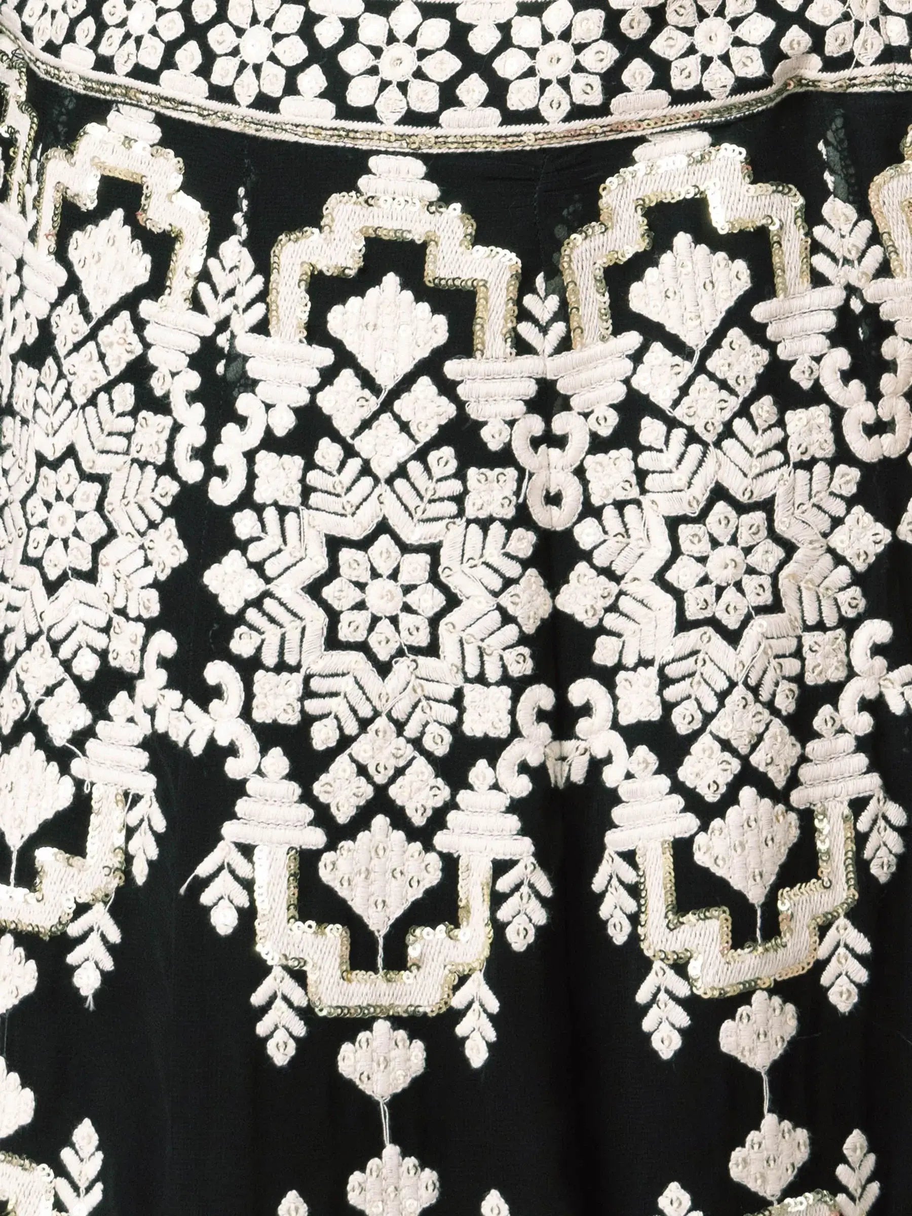 - Complementing the lehenga is a matching black georgette fabric blouse, which features similar intricate embroidery and sequins work. The blouse can be stitched up to size 44, ensuring a comfortable and flattering fit for various body types.